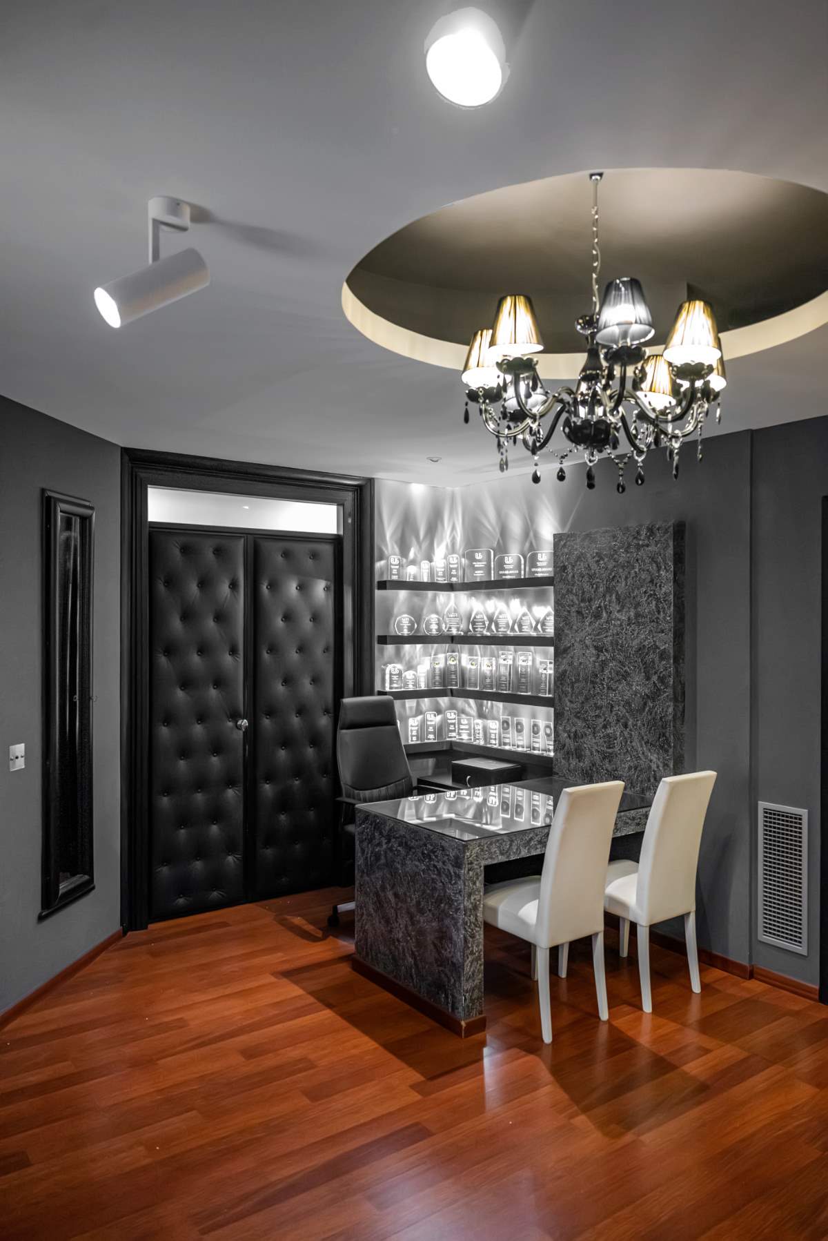 Lo studio è diviso in due parti distinte; uno destinato alla parte commerciale e